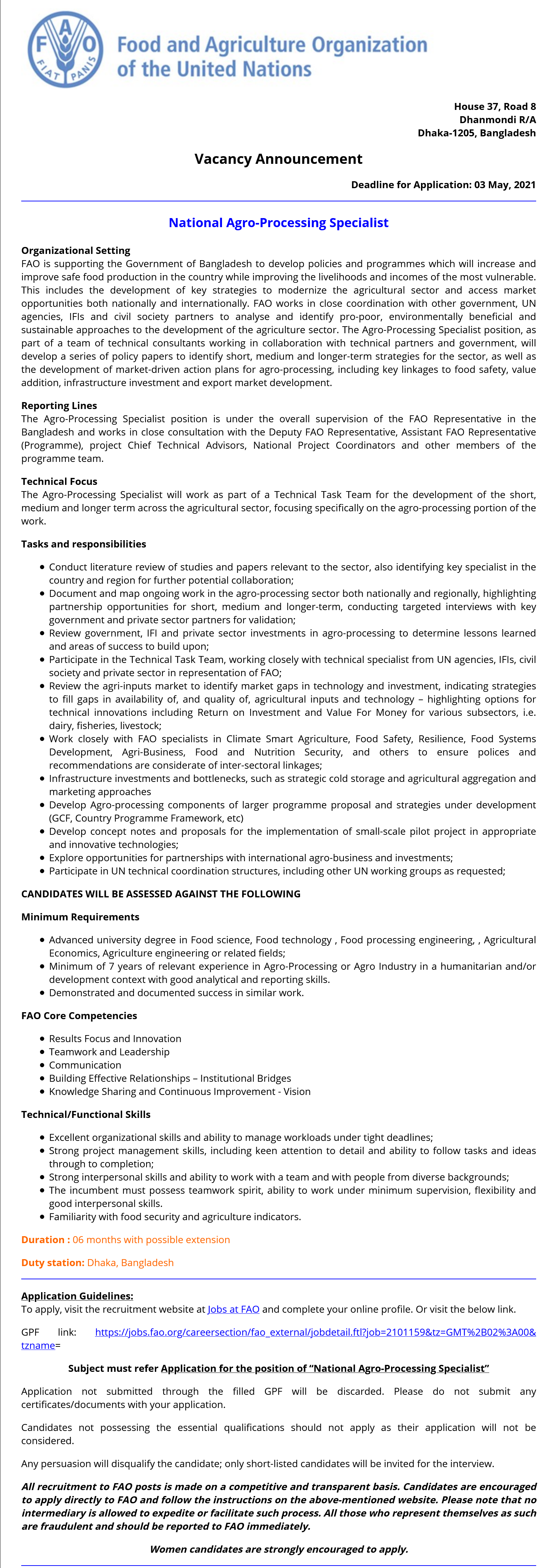 Appointment to various posts in Food and Agriculture Organization (FAO)